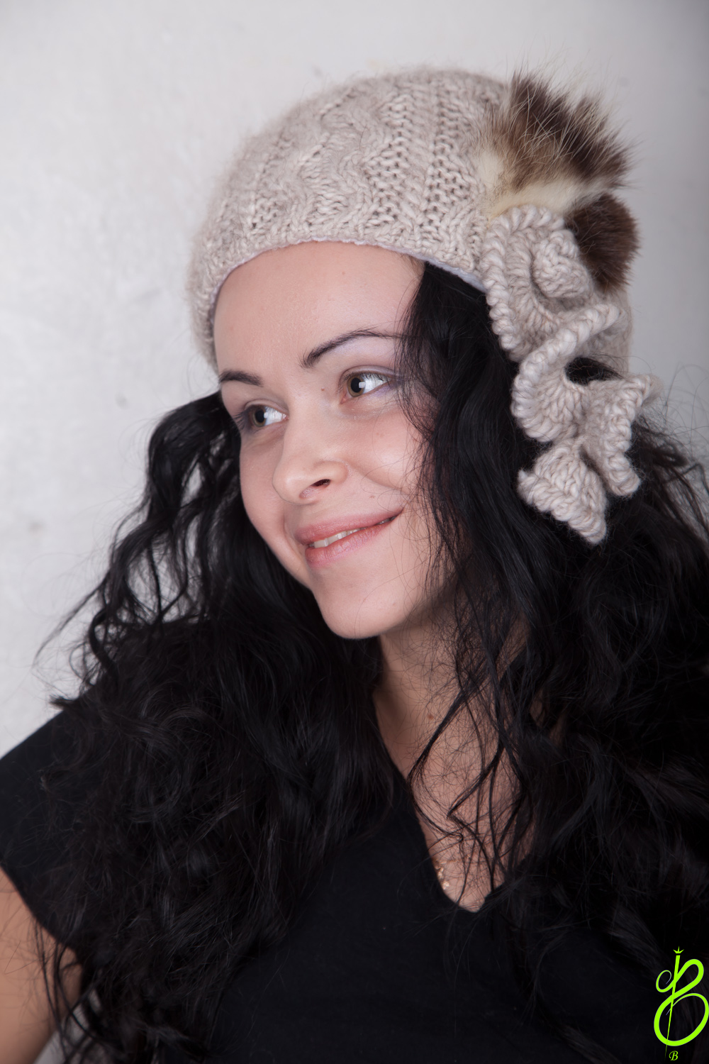 Шапка очень мягкая, по этому декоративная часть может быть и сбоку, как на картинке. И сзади, как сформирована таблетка. Тогда это будет образ времён Анны Карениной. Внутри подкладка-флис, и уплотнение стеночек. Пряжа итальянская, содержит мерино(мягкая овечья шерсть) и альпаку(верблюжья шерсть), аппликация из натурального меха. Стоит 3100. Есть в наличии.